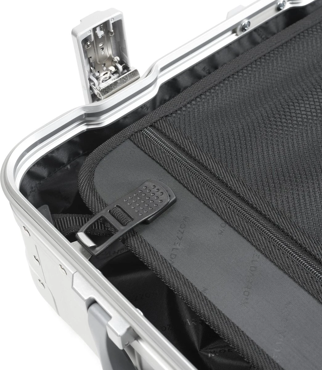 De Mozzel Darrow – Aluminium reiskoffer – World Traveler – Handbagage koffer met 4 wielen – 35 Liter – 20 inch – Harde koffer – Zilver – heeft een modern ontwerp en is gemaakt van lichtgewicht aluminium waardoor hij sterk maar toch licht is. De harde koffer zorgt voor een goede bescherming tijdens je vakantie, zakenreis of weekendje weg. Ze zijn ontworpen met het oog op een lange levensduur en zijn voorzien van 2 TSA sloten zodat reizigers zich tijdens hun reis geen zorgen hoeven te maken dat er iets met hun bezittingen gebeurt. En met behulp van de 360 graden roteerbare antislip wielen manoeuvreert u zich gemakkelijk door het vliegveld.