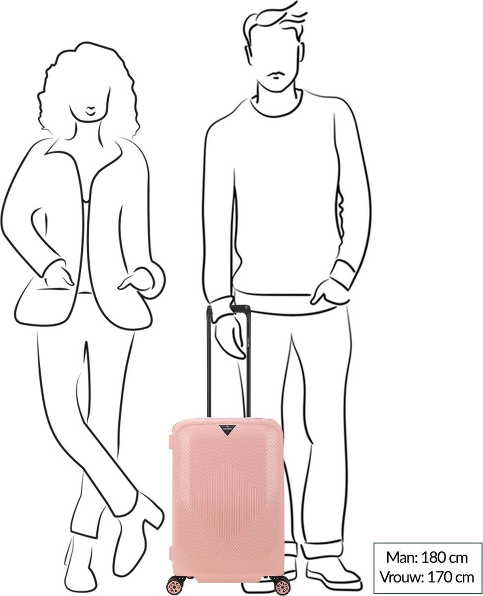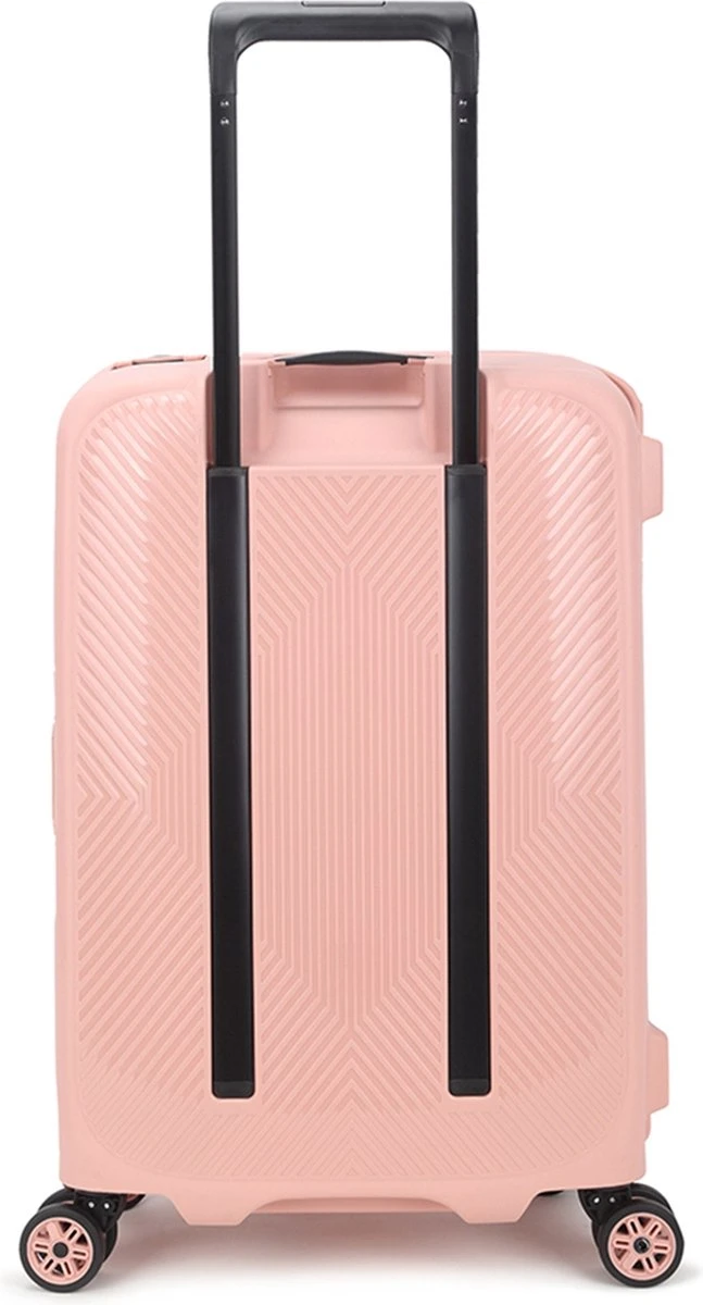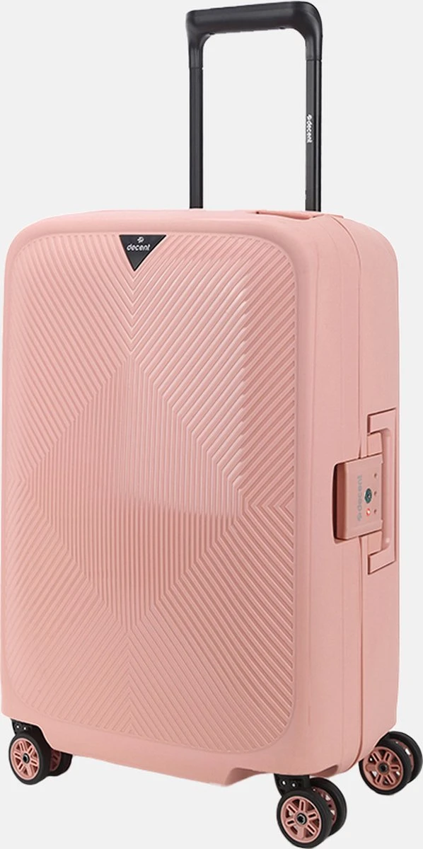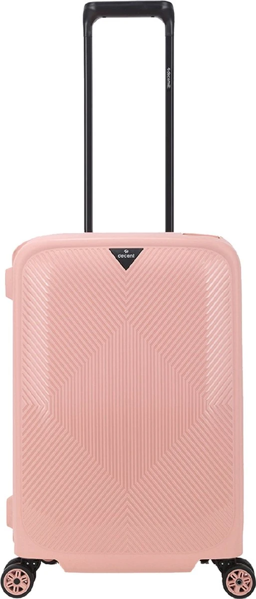 De Axiss-Fix handbagage koffer van Decent is dé ideale koffer om mee te nemen wanneer je een paar dagen weggaat en niet al te veel spullen met je mee wil nemen. De koffer is roze van kleur, compact én licht van gewicht. Daarnaast is hij voorzien van een verstelbare trekstang, twee handvatten en vier soepele roterende wielen. Door deze eigenschappen is de koffer erg comfortabel in gebruik. Het strakke design en de kleur roze maken van deze koffer een stijlvol exemplaar. De koffer is veilig af te sluiten met de driepuntssluiting en het TSA-combinatieslot aan de zijkant.