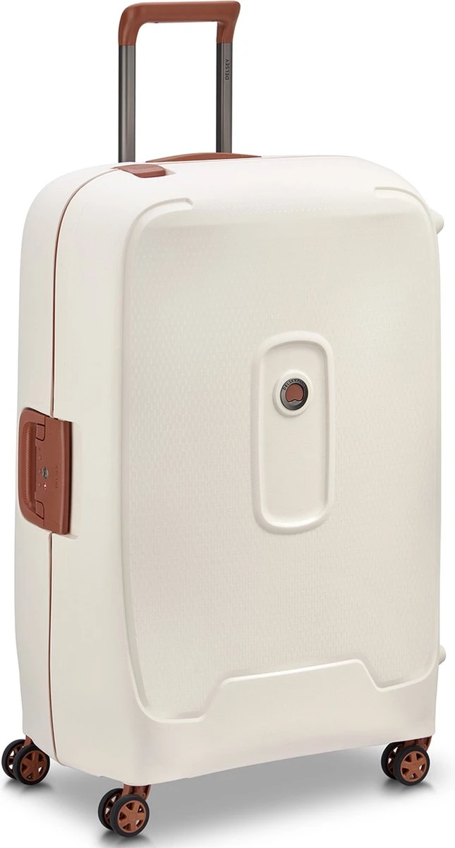 De Moncey 4 Wheels Trolley 76 van het merk Delsey is een grote, sterke en duurzame koffer. De koffer is vervaardigd uit 100% polypropyleen en is hierdoor zeer schokbestendig. Het is een duurzame koffer die jarenlang gebruikt kan worden voor diversie avontuurlijke reizen. De koffer heeft een vaste sluiting met een TSA-combinatieslot voor een perfecte bescherming van de bagage. Kleding is zeer geordend op te bergen dankzij de elastische inpakriemen, het afsluitbare ritscompartiment en de diverse ritsvakken. De vier geruisloze en dubbele wielen zorgen voor een maximaal gebruiksgemak. Kenmerken: * Hoofdcompartiment met vaste sluiting* Inpakriemen* Afsluitbaar ritscompartiment* Diverse ritsvakken* Vier dubbele, 360 graden draaiende, geruisloze wielen* Uitschuifbare trekstang* TSA-combinatieslot* Adreslabel* Geschikt voor ongeveer 28 kilo bagage