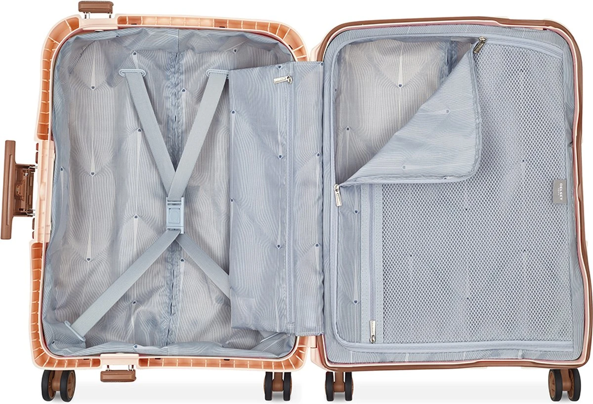Handbagage spinner uit de vernieuwde Moncey serie van Delsey. De Delsey Moncey koffer biedt alles wat een moderne koffer nodig heeft. De schaal is gemaakt van polypropyleen en is naast zeer sterk ook relatief licht. Voorzien van een veilig driepuntssluiting én een TSA-combinatieslot voor zorgeloos reizen van en naar de VS. Het interieur is volledig gevoerd en praktisch ingericht met een tussenschot en inpakriemen. Zeer gemakkelijk mee te nemen met 4 stille wielen en verstelbare trekstang. De schaal is zeer waterafstotend en door een speciale strip is hij waterproof. De koffer is geschikt las handbagage voor in het vliegtuig.