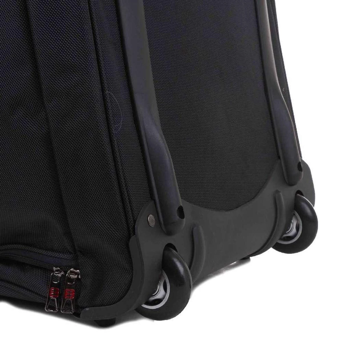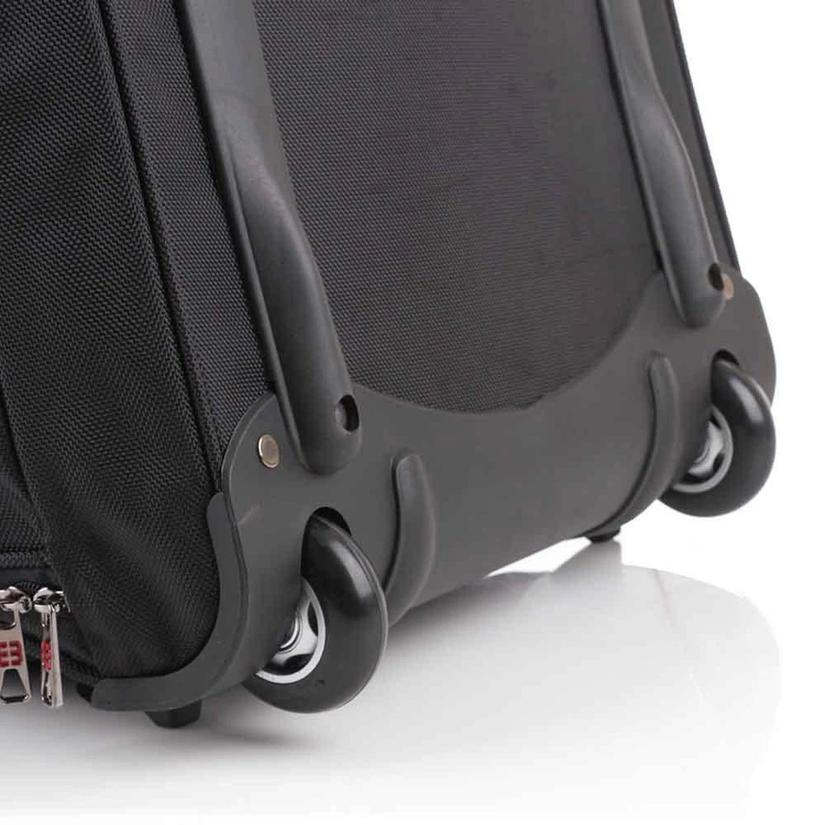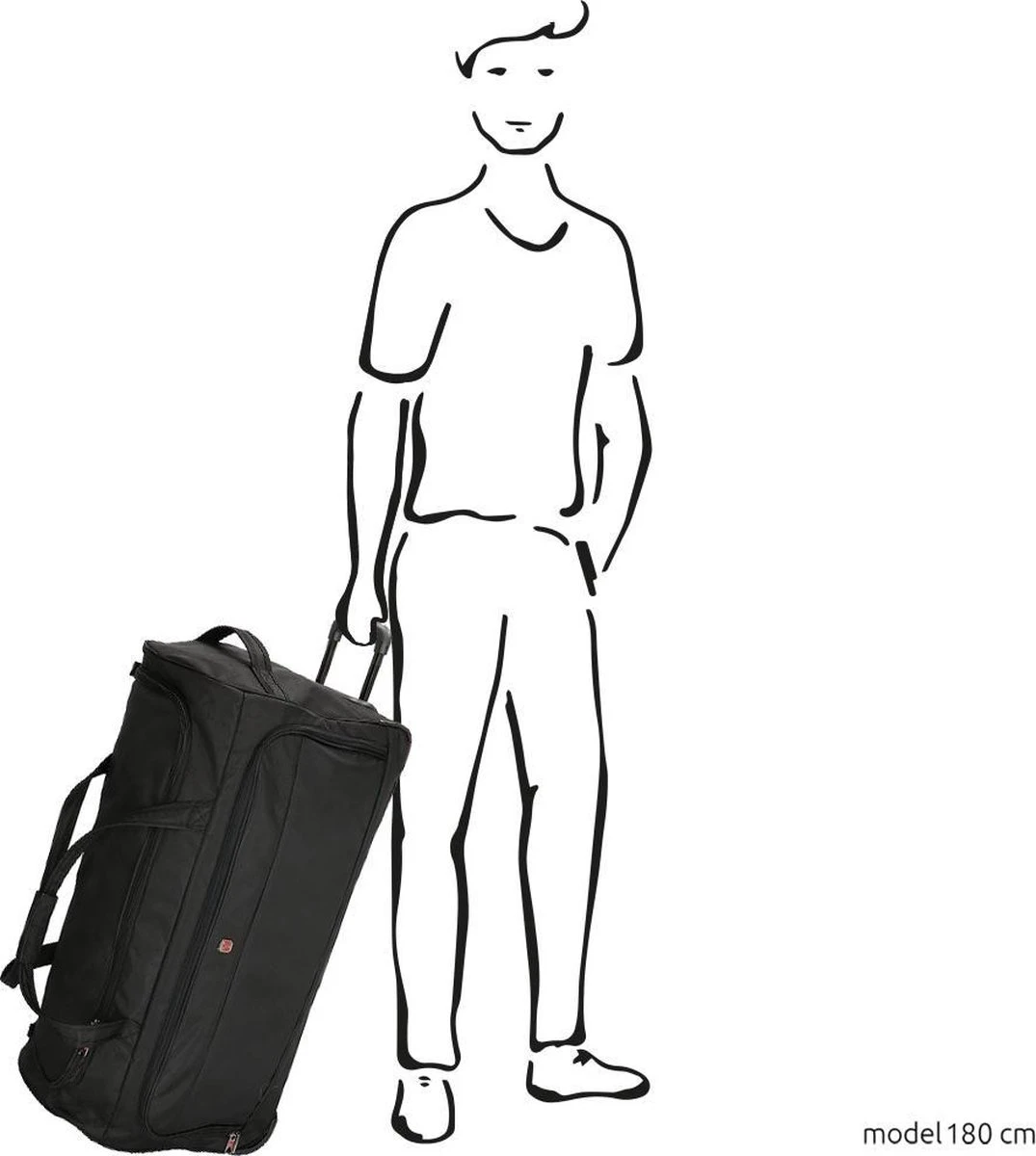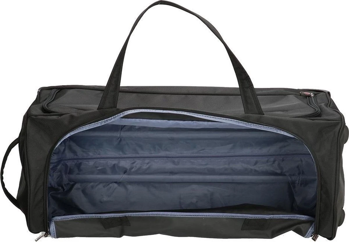 De wieltas is gemaakt van duurzaam polyester met waterafstotende coating. Optimaal reiscomfort wordt geboden door de 2 wielen en een uitschuifbare trekstang.