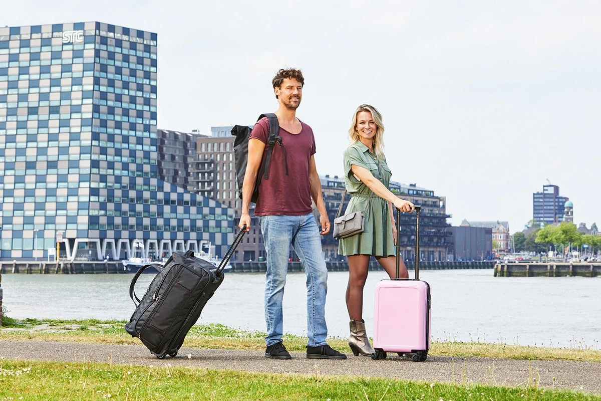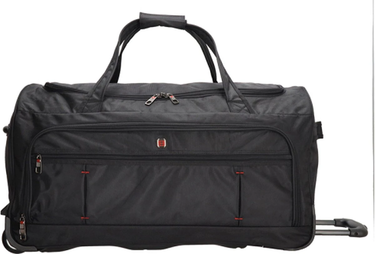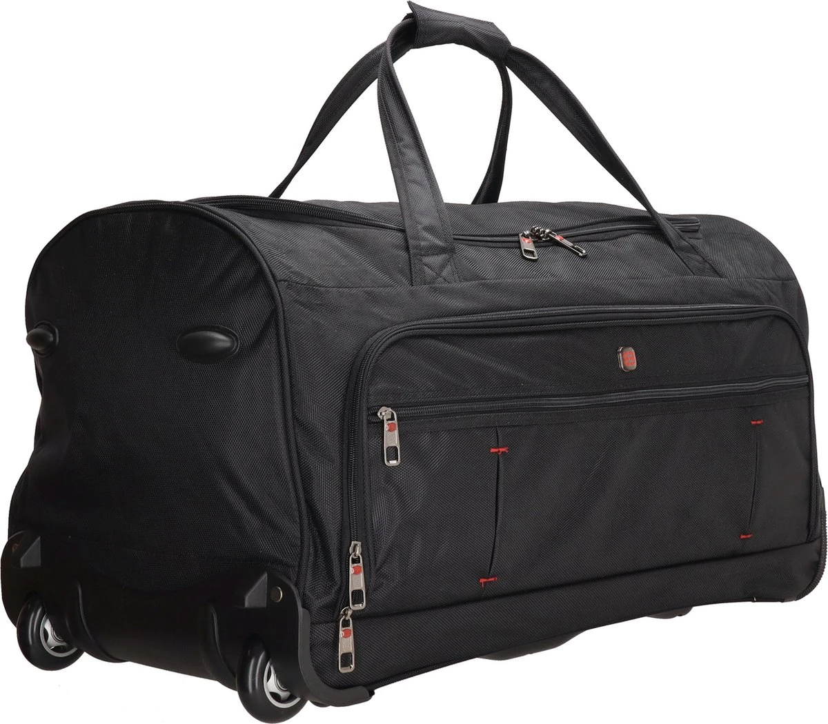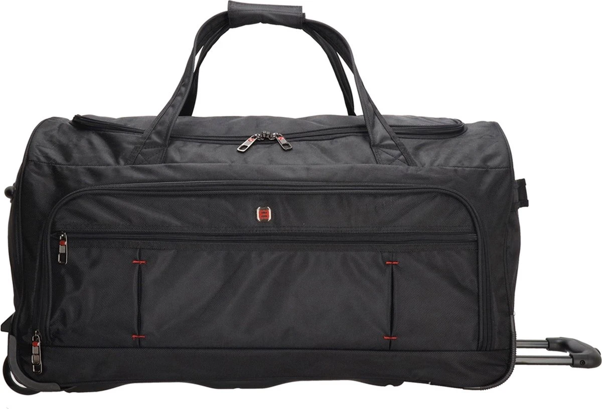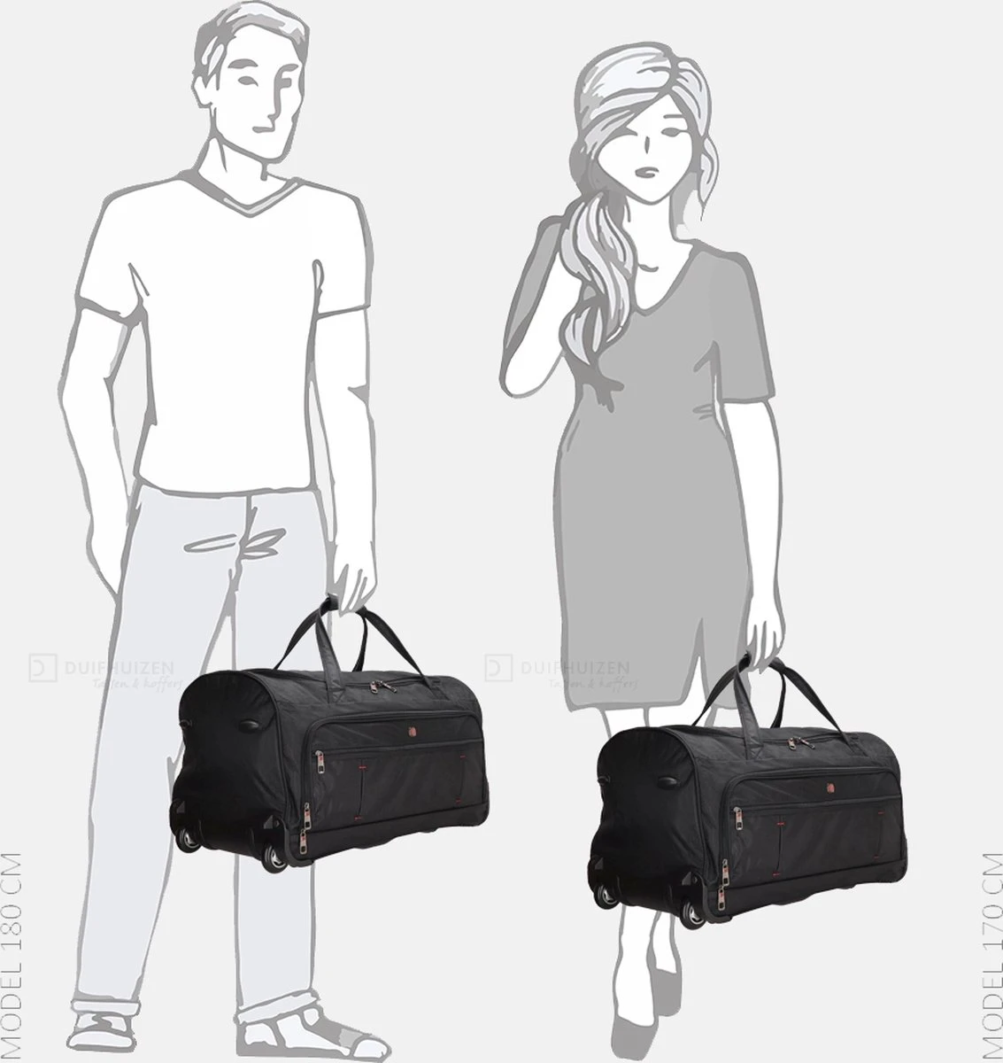 De wieltas heeft een volledig verstevigde bodemplaat met kunststof beschermstukken op de bodem en de zijkant, waardoor de tas zeer stevig is en ook op de zijkant rechtop kan blijven staan. De reistas heeft twee skate wielen en een stevige uitschuifbare trekstang. Zo neem je de tas overal gemakkelijk mee naar toe! En helemaal veilig: de ritsen van het hoofdvak hebben een oogje waar je een slotje doorheen kunt halen (niet inbegrepen). Zo kan jouw tas niet zomaar open worden gemaakt!