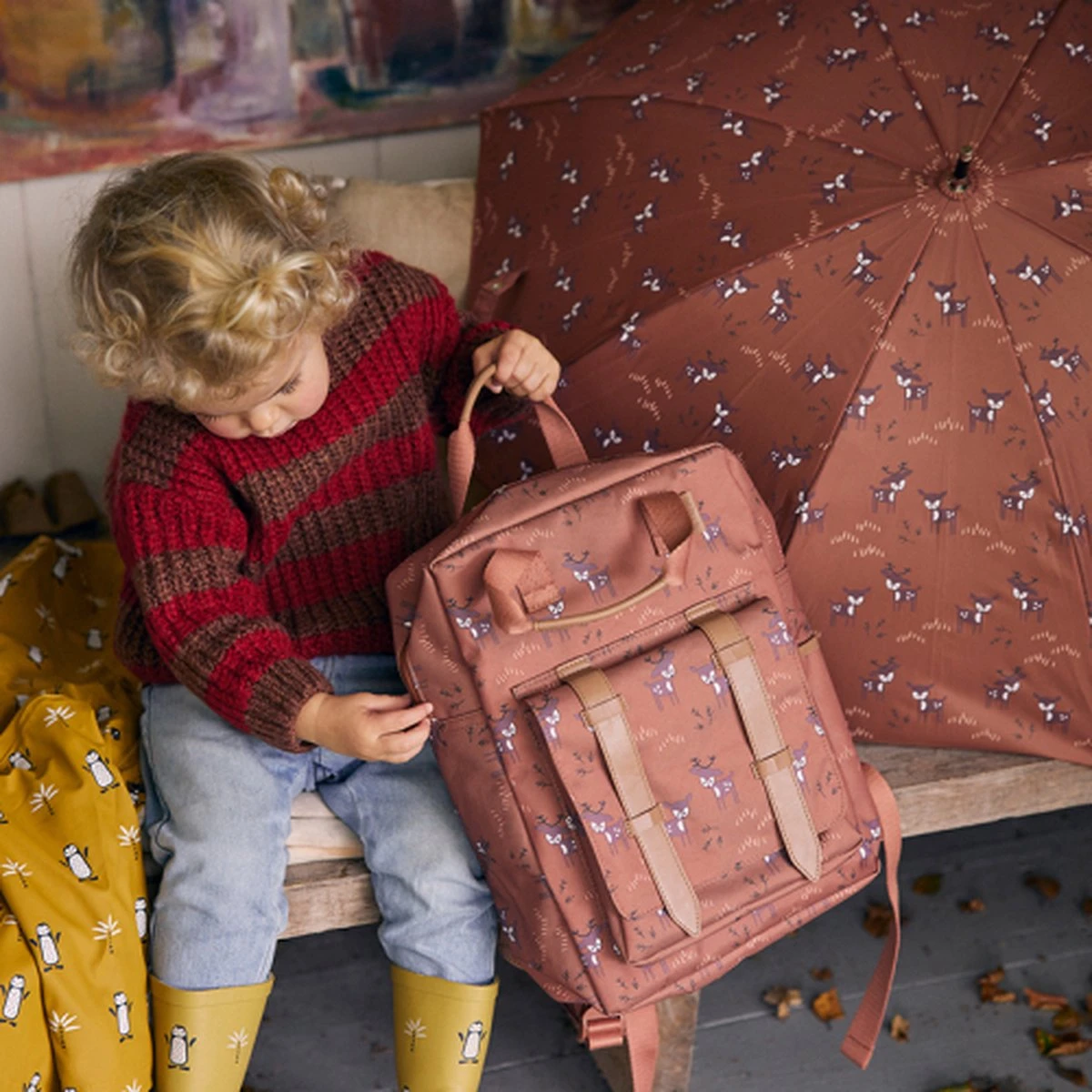 De verschillenden printjes van de kinderrugzakken van Fresk zijn super grappig voor je peuter. Met deze rugzak is je kind goed voorbereid voor de eerste schooldag. Een kleine rugzak met genoeg ruimte om kinderspullen te bewaren. Tevens heeft deze rugzak in de kleur bruin een steekvak aan de voorkant met een magneetsluiting; waar je makkelijk bij kan. Het leukste is dat de rugzakken van Fresk gemaakt zijn van gerecyclede PET flessen, zodat jij en je kindje ook bijdragen aan het tegengaan van milieuvervuiling.