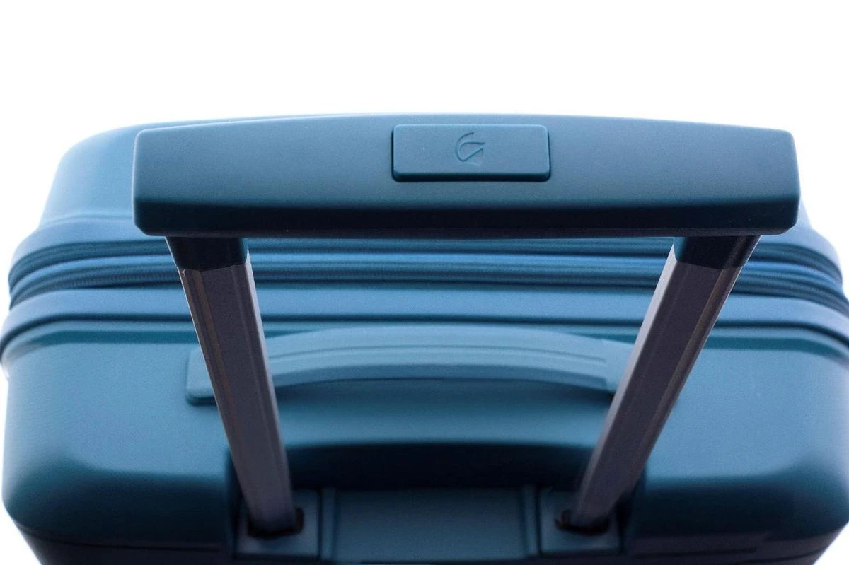 middelgrote kofferexpandable (te vergroten van 70 naar 80 liter)binnenin gestoffeerdtussenschot met ritsspanbandenhandvat op bovenkant en zijkant4 zwenkwielenuitschuifbare trekstangTSA slot