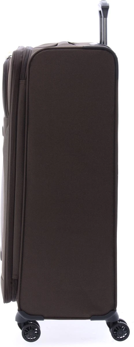 Grote stoffen koffer met dubbele wielen en TSA slot uit de Siroco serie van Gladiator. Koffer is voorzien van een ritssluiting rondom en een extra expandable rits waarmee de koffer qua volume vergroot kan worden van 100 naar 115 liter. Binnenin is de koffer gevoerd, voorzien van elastische spanbanden, een ritsvak en een ritsvak in de binnenkant van de klep. Op de voorzijde van de koffer zitten twee ritsvakken en op de boven- en zijkant zit een handvat. De uitschuifbare trekstang en de 4 zwenkwielen zorgen voor optimaal reiscomfort. De koffer is op slot te zetten middels een vast TSA cijferslot op de zijkant van de koffer.