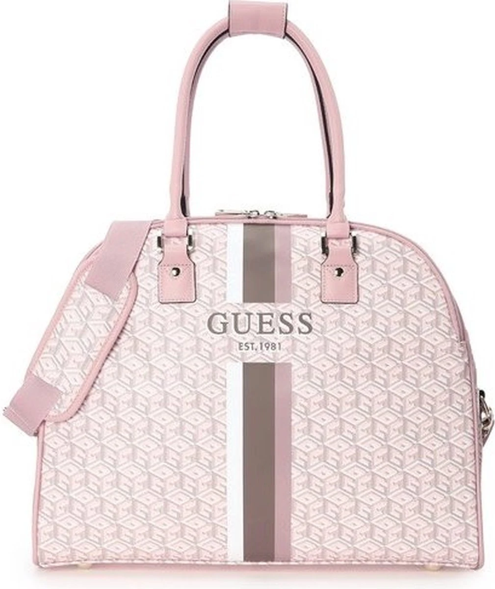 Deze grote, roze Guess ‘Wilder Travel Deluxe Dome’ weekendtas komt uit een gave reisset waar ook verschillende maten koffers bij horen, de tas heeft op de achterzijde een band waarmee je de tas vast kan maken aan de koffer. De reistas is bewerkt met het Guess kubus logo en heeft zacht gouden accenten. Door de vele vakken en twee vakken met beschermlagen aan de binnenzijde (voor bijvoorbeeld een laptop) kan je al jouw spullen geordend opbergen. De roze reistas sluit met meerdere ritsen en is te dragen aan de hengels of een verstelbare schouderband. Afmetingen: Lengte: 47 cm, Breedte: 16 cm, Hoogte: 36 cm