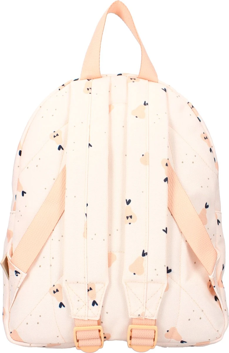Deze rugzak met peren uit de Picture This collectie is de perfecte tas voor jonge kindjes. De rugzak is bedrukt met een een schattige peren print en gemaakt van gerecycled polyester. De rugzak heeft een handig voorvak met een rits met ruimte voor de kleinere spulletjes die mee moeten. Het grote hoofdvak heeft een handige dubbele rits en biedt ruimte voor bijvoorbeeld een broodtrommel of extra setje kleding. De tas is te dragen aan de lus aan de bovenkant of op de rug met de verstelbare, gewatteerde schouderbanden. Aan de binnenkant is een heel handig naamlabel zodat iedereen weet van wie deze trendy rugzak is.