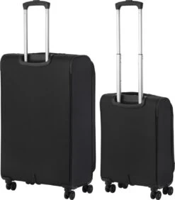 TravelZ Softspinner TSA Kofferset – 2-delig Handbagage + Grote Koffer 77cm – Dubbele Wielen – Zwart