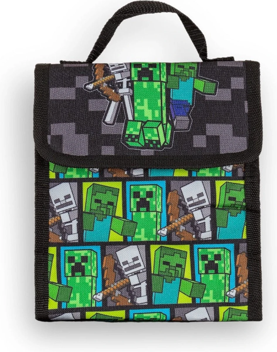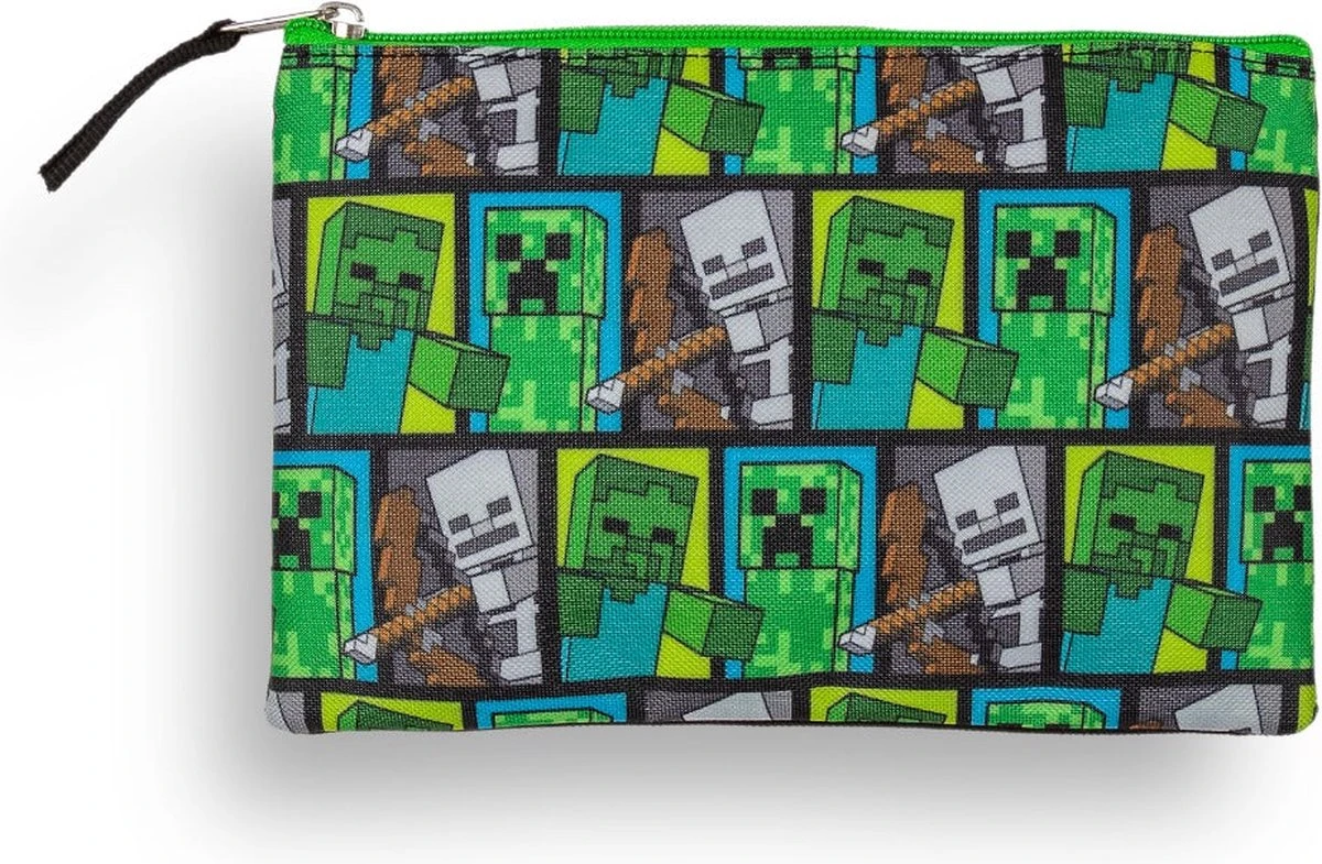 Op de voorkant van de rugzak maar ook op de andere onderdelen van de set vind je de Creeper, Zombie en Skeleton.