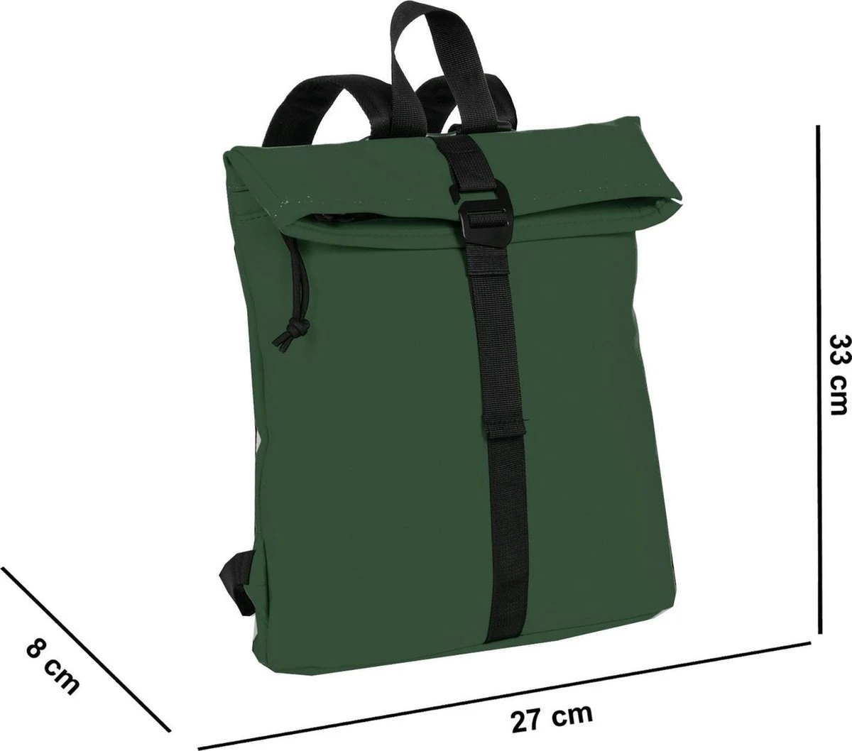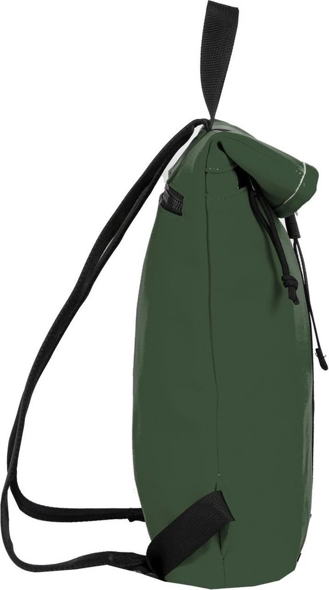 Stoere middelgrote Waterafstotende rugzak uit de Mart serie van New Rebels. De rugzak is gemaakt van tarpaulin. Dit waterafstotende materiaal zorgt er voor dat de tas tegen een stootje kan en jouw eigendommen droog blijven tijdens verschillende weersomstandigheden. Het hoofdvak is afsluitbaar middels een ritssluiting en haaksluiting. De rugzak is oprolbaar ofwel qua volume wat te vergroten danwel te verkleinen. Binnenin zit een ritsvakje en twee steekvakjes voor bijv. je telefoon en sleutels. Op de voorzijde van de tas zit een ritsvak waarin je spullen kwijt kunt die je snel bij de hand wilt hebben. Op de achterzijde zit ook een ritsvak. De twee schouderbanden zijn in lengte verstelbaar. Met de lus aan de bovenkant kan de tas makkelijk opgepakt worden of in de hand gedragen worden.