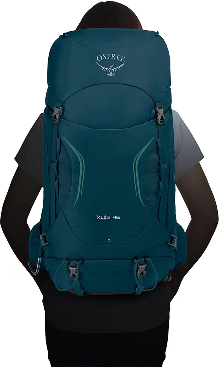 De Kyte 46 Women’s Backpack van Osprey is de perfecte reisgenoot voor avontuurlijke reizen. De tas is te gebruiken in een regenbui dankzij een geïntegreerde regenhoes, maar ook in warm weer dankzij een ventilerend rugpaneel. Dit rugpaneel is daarnaast verstelbaar in lengte en is voorzien van een vrouwelijke pasvorm. Dit zorgt voor extra draagcomfort tijdens het dragen van de rugzak. Voor het opbergen van eigendommen is het ruime hoofdvak voorzien van een lange ritssluiting zodat je dit vak gemakkelijk kunt indelen. Daarnaast is de tas voorzien van andere opbergvakken zoals een stretchvak aan de voorzijde en twee zijvakken op de heupgordel. Kenmerken: * Verstelbaar rugpaneel met vrouwelijke pasvorm* Heupgordel met ritsvakken* Verstelbare schouderbanden* Borstriem met noodfluitje* Compressiebanden aan de zij- en onderkant* Geïntegreerd en afneembare regenhoes* Voorbereid drinksysteem* Verwijderbare riemen voor slaapmatje* Zijvak met ritssluiting* Lange ritssluiting van het hoofdvak* Basisvak voor een slaapzak of viezen was met interne verdeler* Stow-on-the-Go wandelstokken bevestiging* Stretch voorvak* Top deksel toegang* Ritsvak in de top deksel