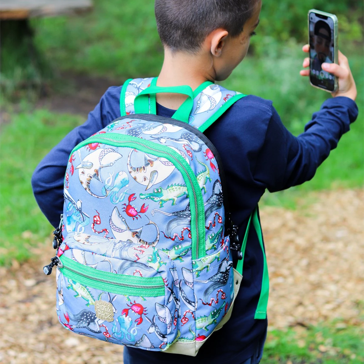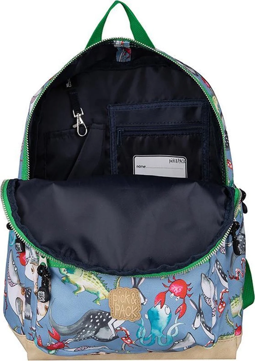 Pick & Pack rugzak in een kleurrijke dierenprint voor kinderen van 6 jaar en ouder. Dankzij het juiste formaat is de rugtas geschikt voor A4 formaat schoolspullen, een lunchbox en alle andere benodigdheden. Voorzien van een speciaal vak voor een drinkfles. Aan de binnenzijde zit een klein ritsvakje, vakje voor telefoon en een makkelijke sleutelhouder. Met daarop een adres label voor naam, adres en telefoonnummer. Makkelijk voor als de rugtas eens ergens wordt vergeten! Een apart gewatteerd vak is bereikbaar met een rits, hierin kunnen boeken of een 13inch laptop of ipad worden opgeborgen. Voorop een borstbandje om de rugzak stevig vast te maken tijdens het lopen. De rugtas is ook voorzien van kleine reflecterende details zodat je ook in het donker opvalt. Dankzij de gewatteerde schouderbanden en het ergonomische rugdeel is de tas goed door het kind zelf te dragen.