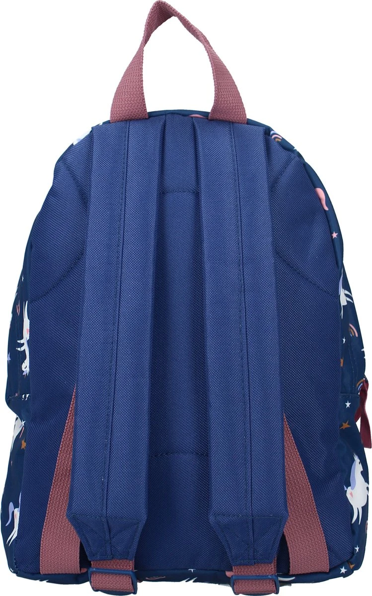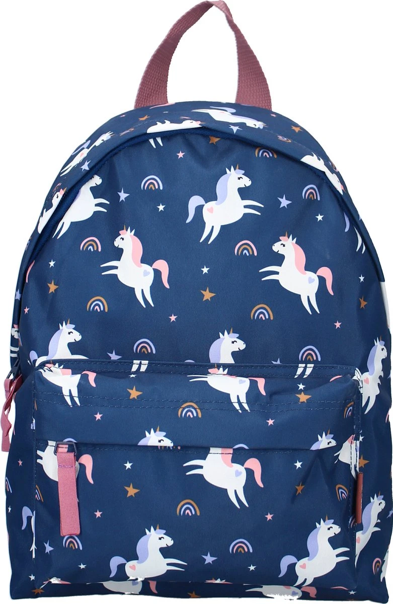 Laat de fantasie van je kindje de vrije loop met deze leuke rugzakken uit de ‘Imagination’ collectie! Deze collectie is voorzien van rugzakken voor kleine kindjes met magische kleurrijke dierenprints. Op deze rugzak zijn magische unicorns afgebeeld. De rugzak heeft een ruim voorvak waarin je kindje al zijn of haar spullen in kwijt kan. De tas is blauw van kleur en afgewerkt met roze details. De schouderbanden zijn verstelbaar en met de ritsjes is de tas eenvoudig te openen en sluiten. Zo kan een kind in het grote hoofdvak al zijn of haar speelgoed of logeerspullen stoppen!