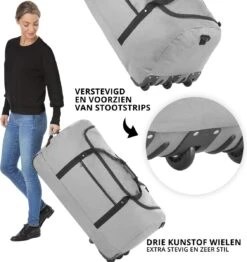 TravelZ Opvouwbare Wieltas | Reistas Op Wielen | 100 Liter | Verbeterd 2022 Model | Grijs
