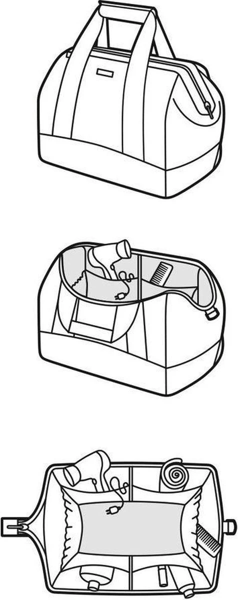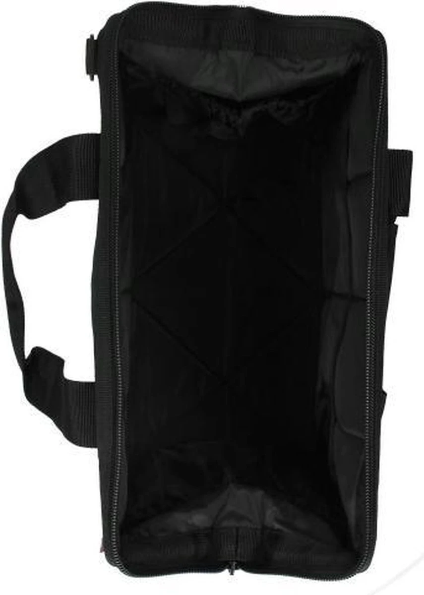 • Opening met een ritssluiting en metalen beugels voor een extra brede opening