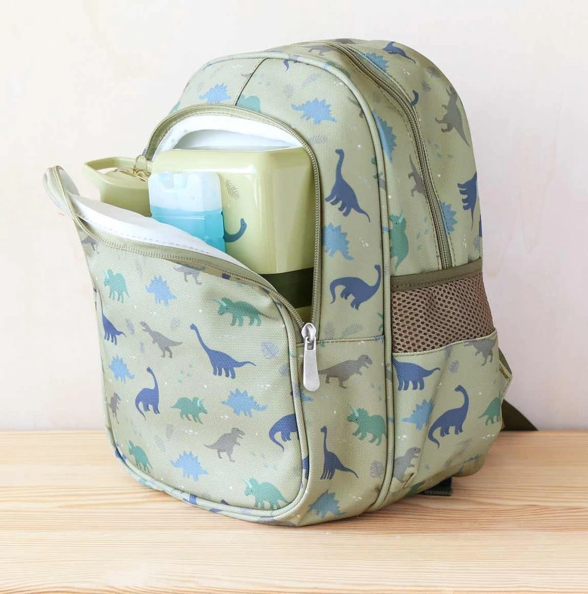Deze leuke rugzak met geïsoleerd voorvak heeft genoeg ruimte voor onderweg of naar school. In de twee handige zijvakken past een drinkfles en met het extra binnenvak houd je spulletjes eenvoudig gescheiden. De tas blijft altijd goed zitten, want dankzij de gesp zakken de verstelbare schouderbanden niet af.