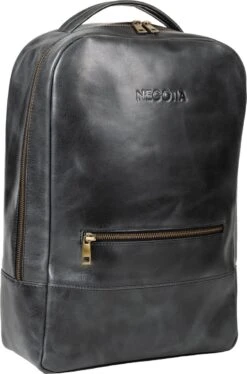 NEGOTIA Alpha – Leren Laptop Rugzak Dames En Heren – Leren Rugtas – 100% Luxe Top-Grain Leer – Zwart