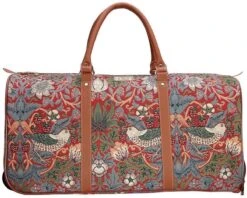 Weekendtas met wielen Strawberry Thief Red – William Morris