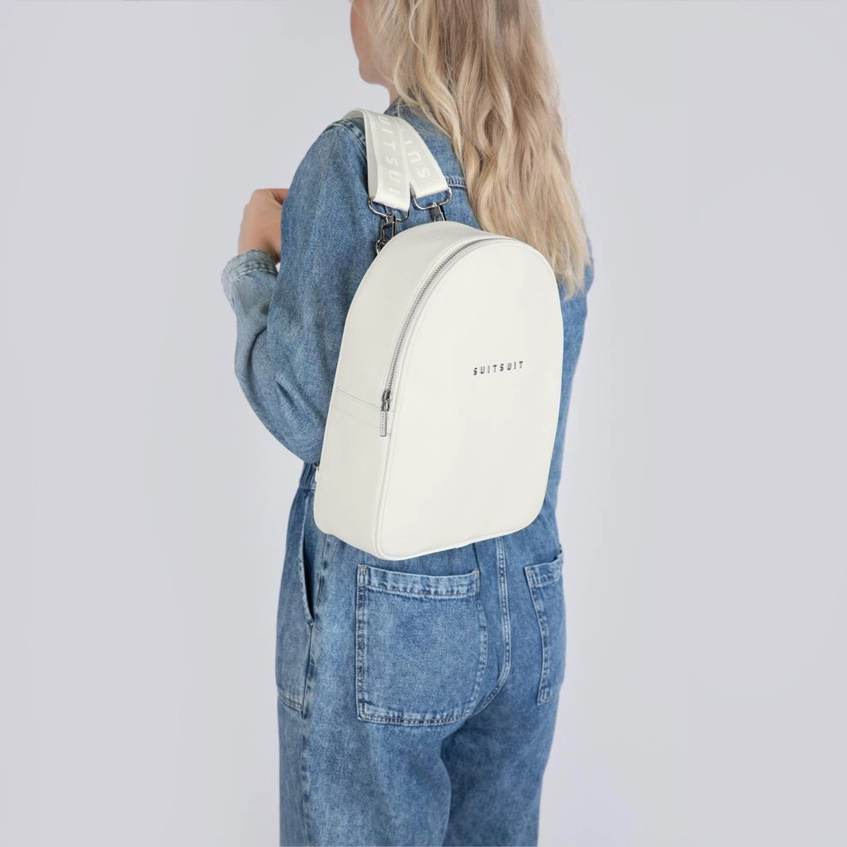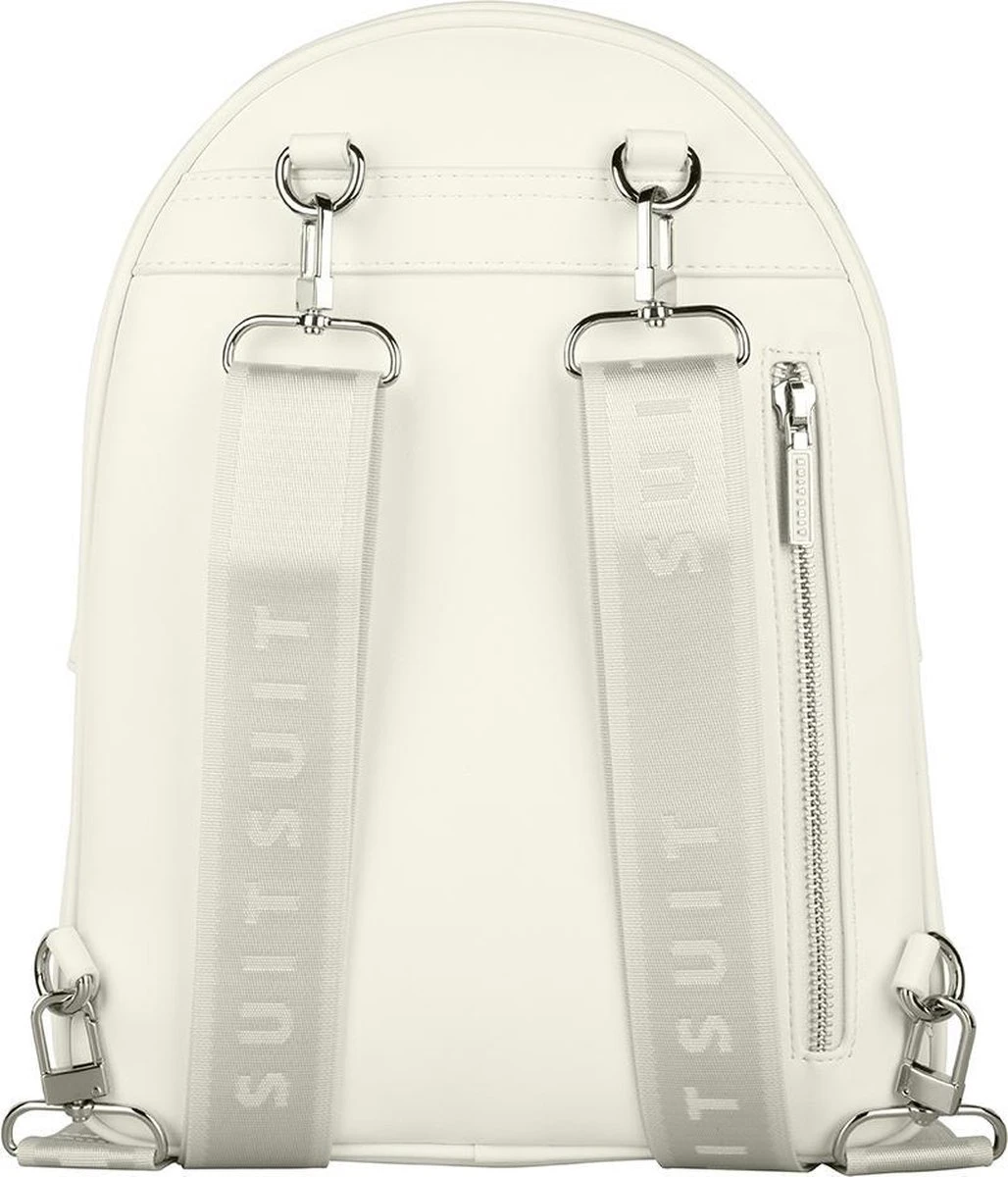 Wil je helemaal trendy de deur uit? Stijlvol minimalistisch en helemaal in fashion? Dan kan je niet om deze nieuwe Fabulous Fifties Backpack heen. Deze hippe rugzak is uitgevoerd in duurzaam kunstleer en wordt geleverd met twee afneembare, crèmewittedraagbanden. Wil je hem niet als backpack maar als crossbody dragen? Geen probleem. Je bevestigt gewoon maar &;&;n draagband, verstelt hem op de juiste hoogte en klaar. Super handig! Ondanks zijn bescheiden formaat biedt deze backpack veel opbergruimte voor je persoonlijke eigendommen, inclusief een tablet of iPad. Binnenin aan de voorzijde vind je een opbergvakje voor je telefoon en een handig afsluitbaar vakje voor je sleutels of pasjes zodat je niet door je hele tas hoeft te graaien op zoek naar.Je meest belangrijke items kun je ook opbergen in het zijvakje op de achterkant van de tas. Zo draag je ze dicht bij je en kan er niemand bij. En wanneer je je nieuwe SUITSUIT backpack even niet gebruikt, kun je hem opbergen in de meegeleverde beschermhoes.Samenvattend Gemaakt van duurzaam vegan leather Zowel als backpack als crossbody te dragen Inclusief verstelbare en comfortabele draagbanden Losse draagbanden in verschillende trendy kleuren verkrijgbaar Voorzien van een soepele, zilverkleurige metalen rits Ruim interieur met speciaal vak voor je tablet/ iPad Twee handige vakjes aan de voorzijde voor je telefoon, sleutels en pasjes Veilig opbergvakje op de achterzijde Inclusief beschermhoes