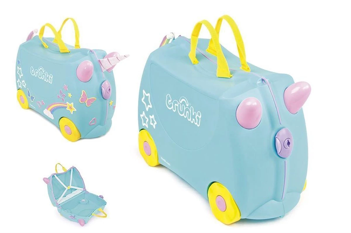 Una de Eenhoorn Trunki maakt van elke reis voor je kleintje een mystieke en magische ervaring! Haar zijdeachtige regenboogstaart, glinsterende hoorn (welke onderdeel uitmaakt van het stickerpakket) en stickers maken elke reis een waar spektakel voor elke kleine reiziger. Trunki ride-on koffers zijn de ideale kameraden voor kinderen die onderweg zijn. De koffers zijn oorspronkelijk ontworpen om te worden gebruikt als handbagage, maar hebben zich in de loop der tijd ontwikkeld tot de perfecte metgezel om thuis mee te spelen of om mee te nemen naar logeerpartijen.